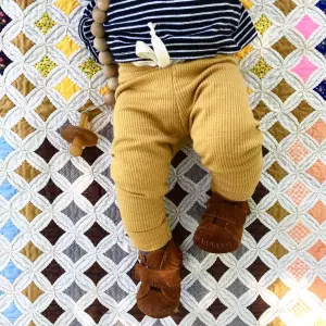 These infant & kid’s moccasins have Comfort plus Velcro which makes this an easy-on, easy-off fringe bootie must-have. These super-soft suede infant & kid’s moccasins have a fully padded insole and are so comfortable that your children will never want to take them off. When they finally do come off, the Velcro® strap will make it ultra-easy. The durable soft suede sole protects little toes while the front strap holds the foot for a perfect stay-on fit.