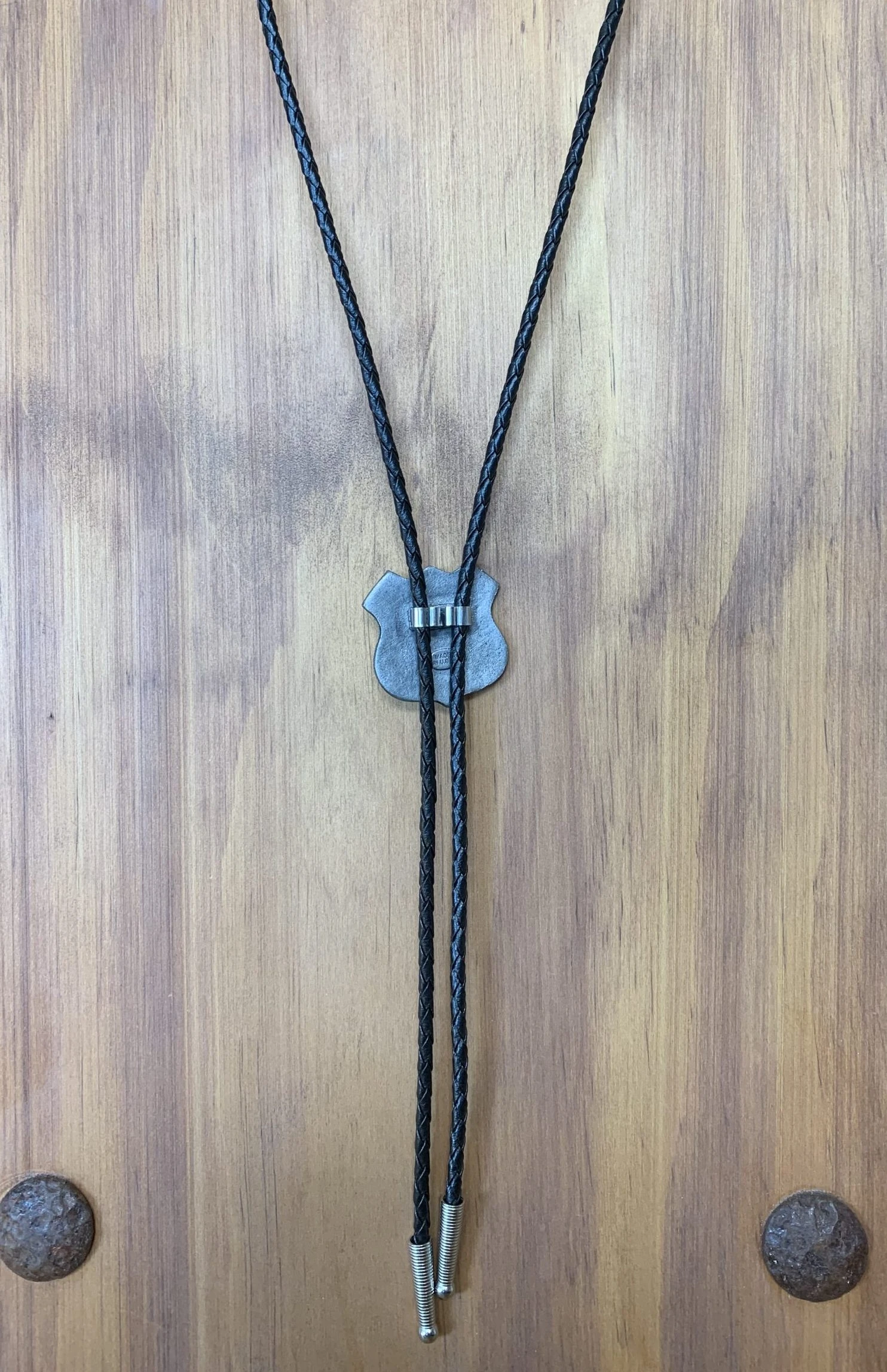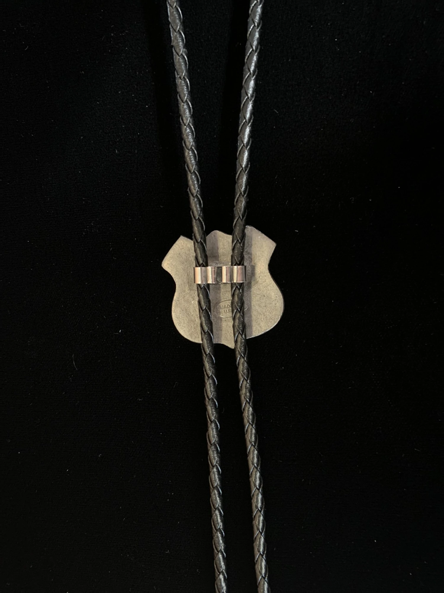 - Silver-tone bolo with roped edges