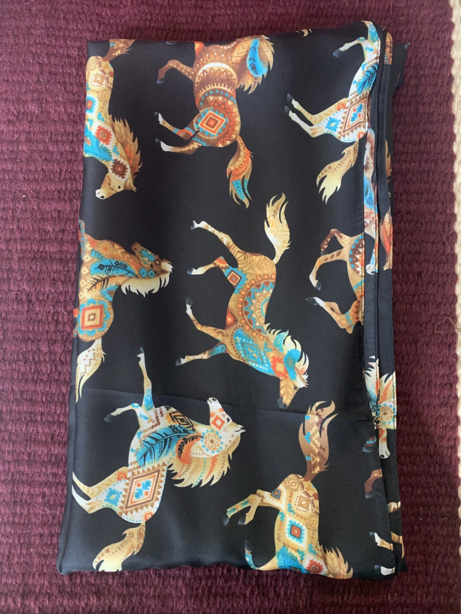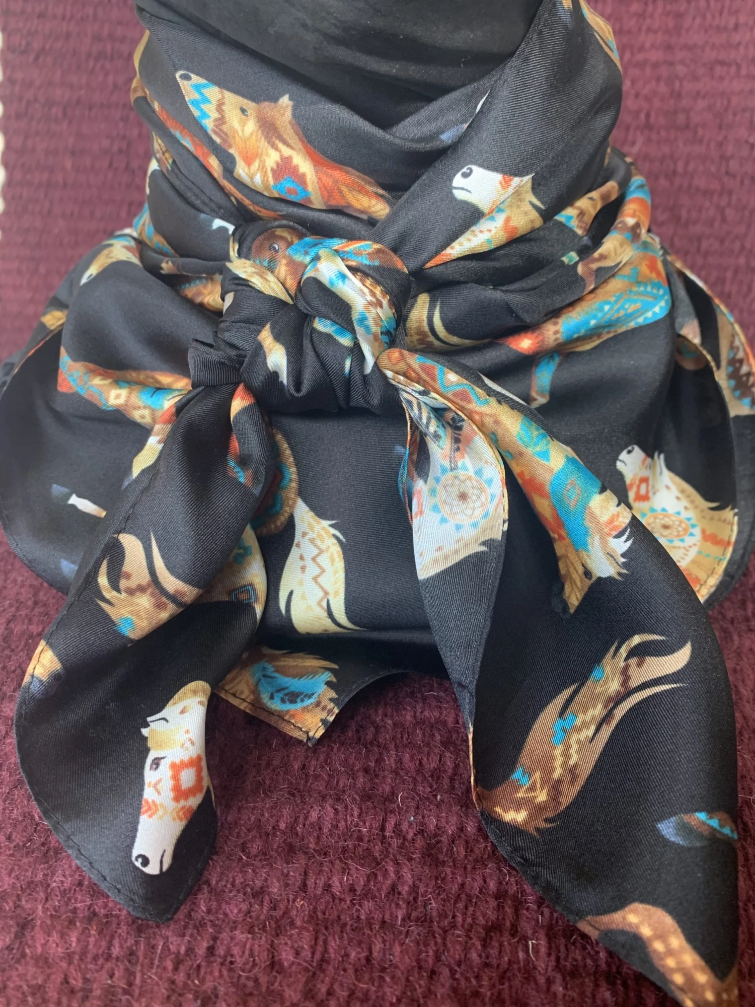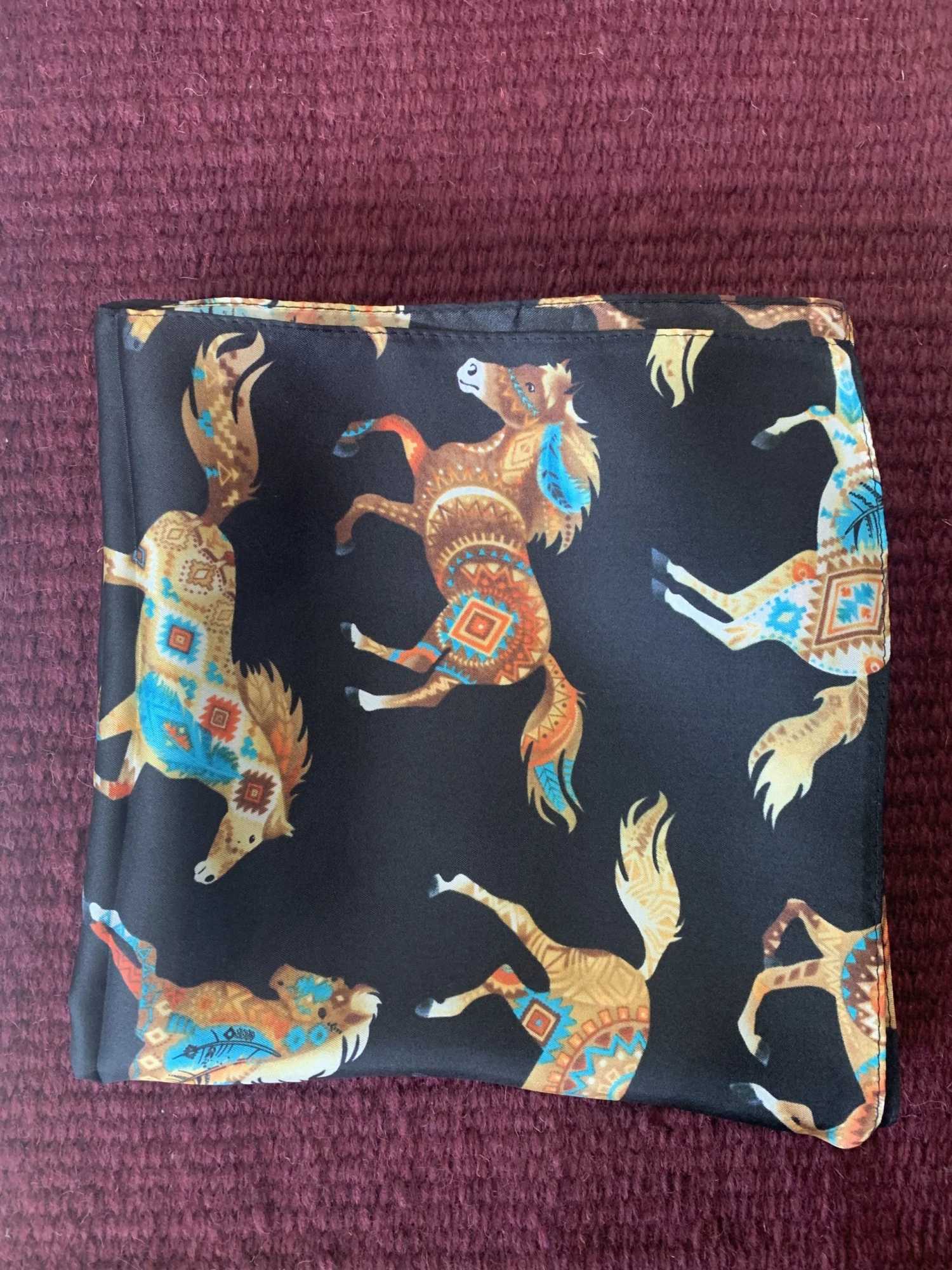 Austin Accents Patterned Feather Horse Wild Rag / Silk Scarf 34″X34″ W-FthrHorse