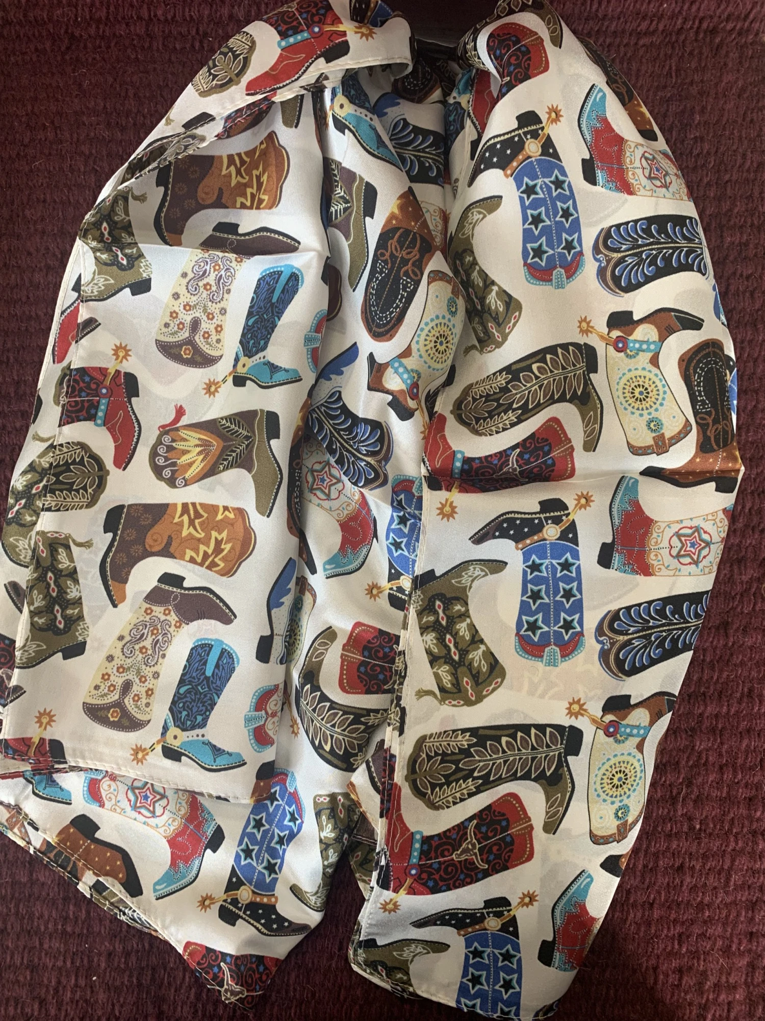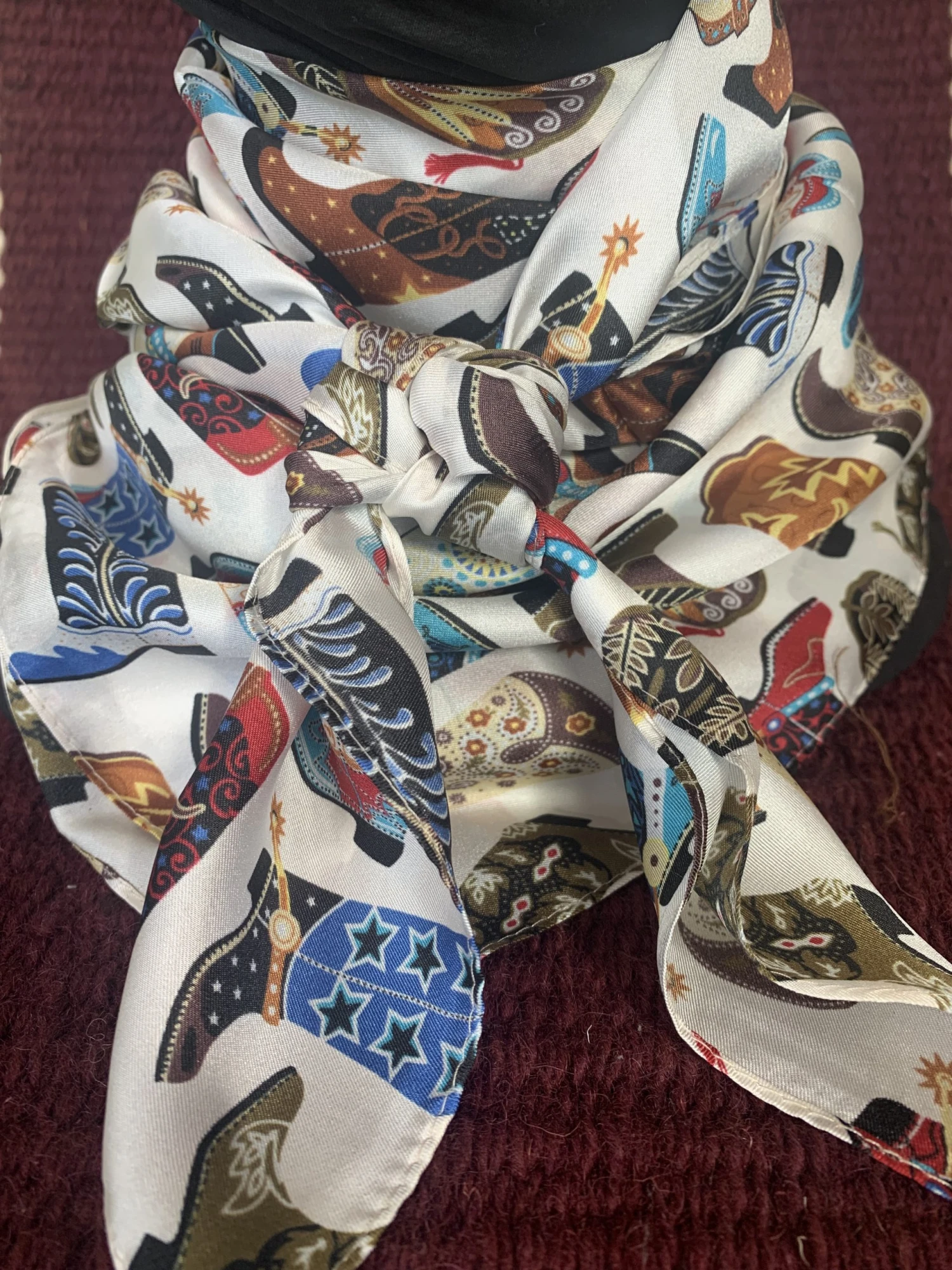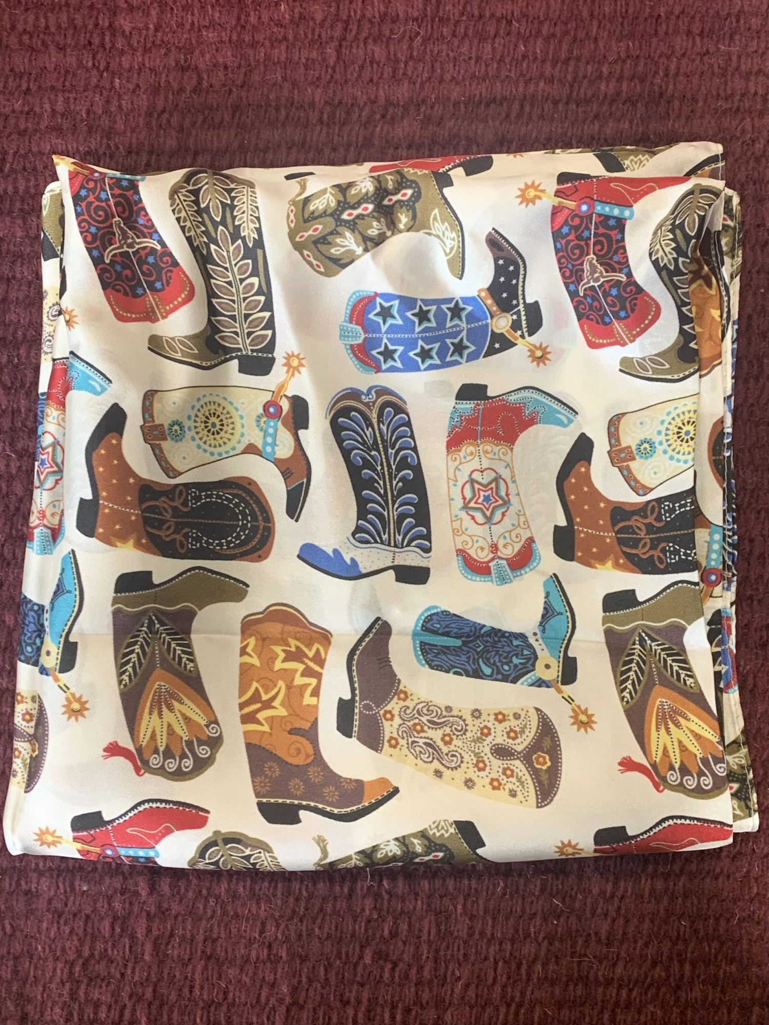Austin Accents Patterned Multi Boots Wild Rag / Silk Scarf 34″X34″ N-Boots Mult