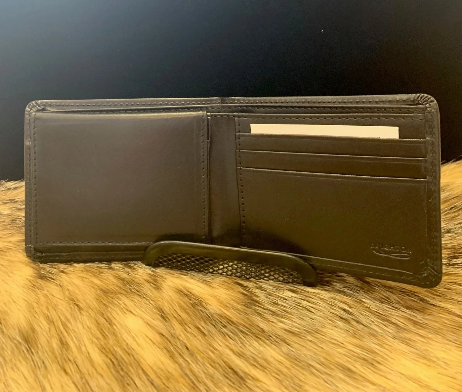 Fold it up in a wallet with plenty of space for your ID, credit cards and cash. Show your cowboy credentials with a rugged-as-ever wallet. Made from leather, built with durability, its interior is as practical as its exterior is handsome. Fits cards, id, and more. This bi-fold wallet is made with long-lasting leather. Inside you’ll find three card slots and a three interior pockets. Since this is a natural product, clean and condition regularly.