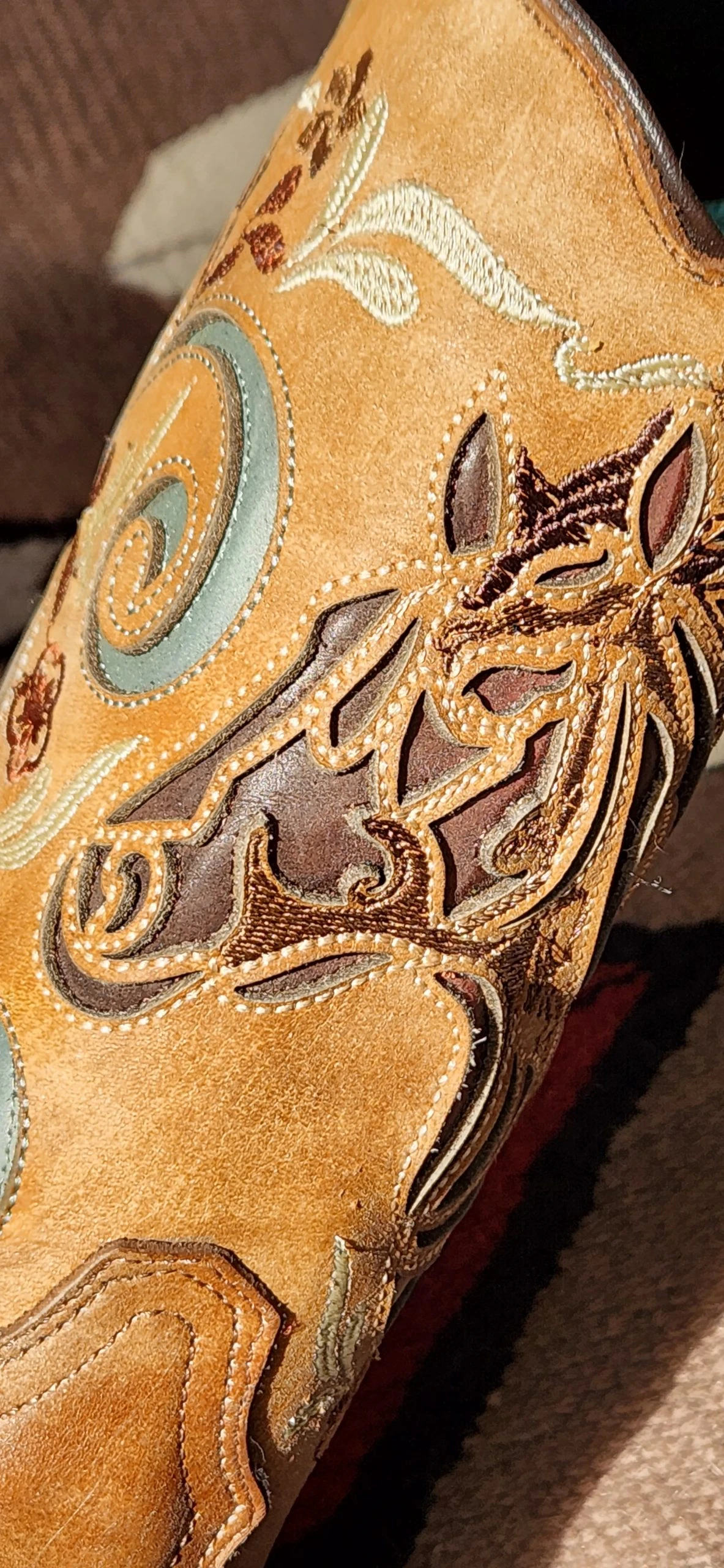 - Western embroidery detail on shaft and foot.