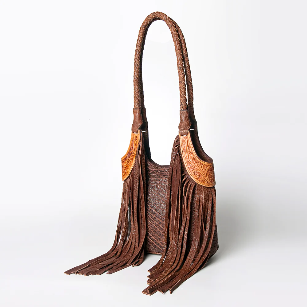 Genuine Full Grain Leather is used for the bag. It’s a Soft and supple leather that ages beautifully as it wears. The bag is decorated with a beautiful leather fringe giving it a western look. Tooled and painted Leather is a vegetable tanned Cowhide Leather with nature-inspired engravings. The bag is spacious enough to carry a lot of stuff. YKK well known long lasting and durable zipper closures ensure security of your essentials.
