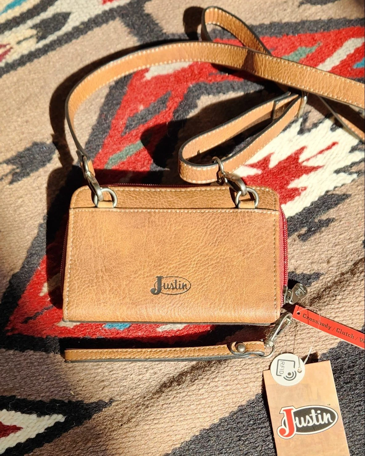 Justin Wallet on String Tonal Tan with Muted Red 22074787W