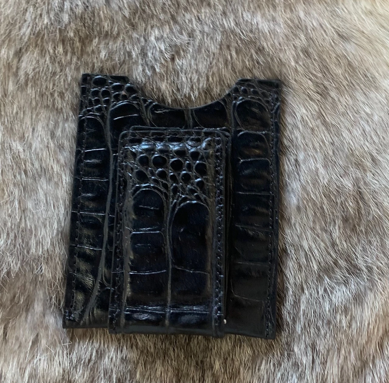 A stylish leather wallet with a magnetic personality! There’s plenty of room for credit/business cards and a magnetic money clip for currency. A stylish way to clip your cash! The inside of the spacious leather money clip consists of credit card slots, money slots, and a place for your ID. Get this embossed money clip to keep all your important items secure and close by you. The beautiful hornback pattern of this Brighton money clip gives it a fun and unique sense of style.