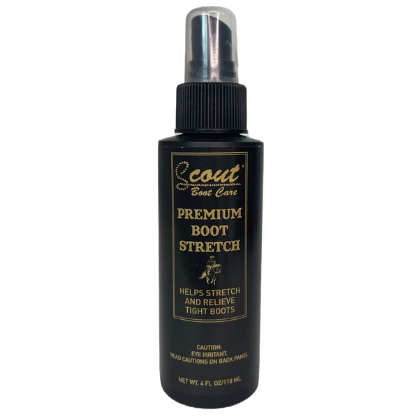 This stretch spray helps relieve discomfort from shoes or boots that fit a bit too tight. 4 ounce spray bottle. Not all boot care products are intended for use on all types of leather. Boot stretch is a colorless spray formulated to help make the skin of the shoes or boots more flexible, allowing the shoes or boots to adapt to the shape of the foot. Eliminates pressure points, helps prevent pain.