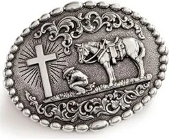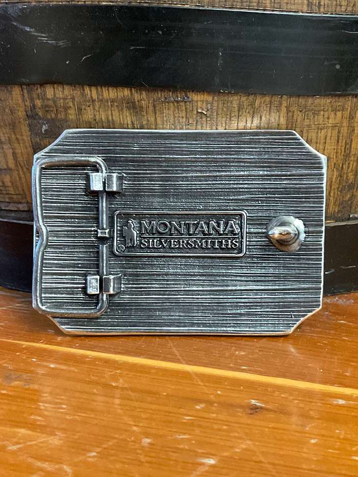An antiqued bronze-tone cast Attitude buckle in a cuffed frame shape. This buckle has an abundance of details with a slim bronze-finished frame lining the outside, American flag print on the background, and bull-rider placed in the center. Standard 1.5 inch belt swivel. Made out of silver, gold plate over a solid cast white metal alloy base. Montana Armor protective finish to prevent tarnish. Paint.