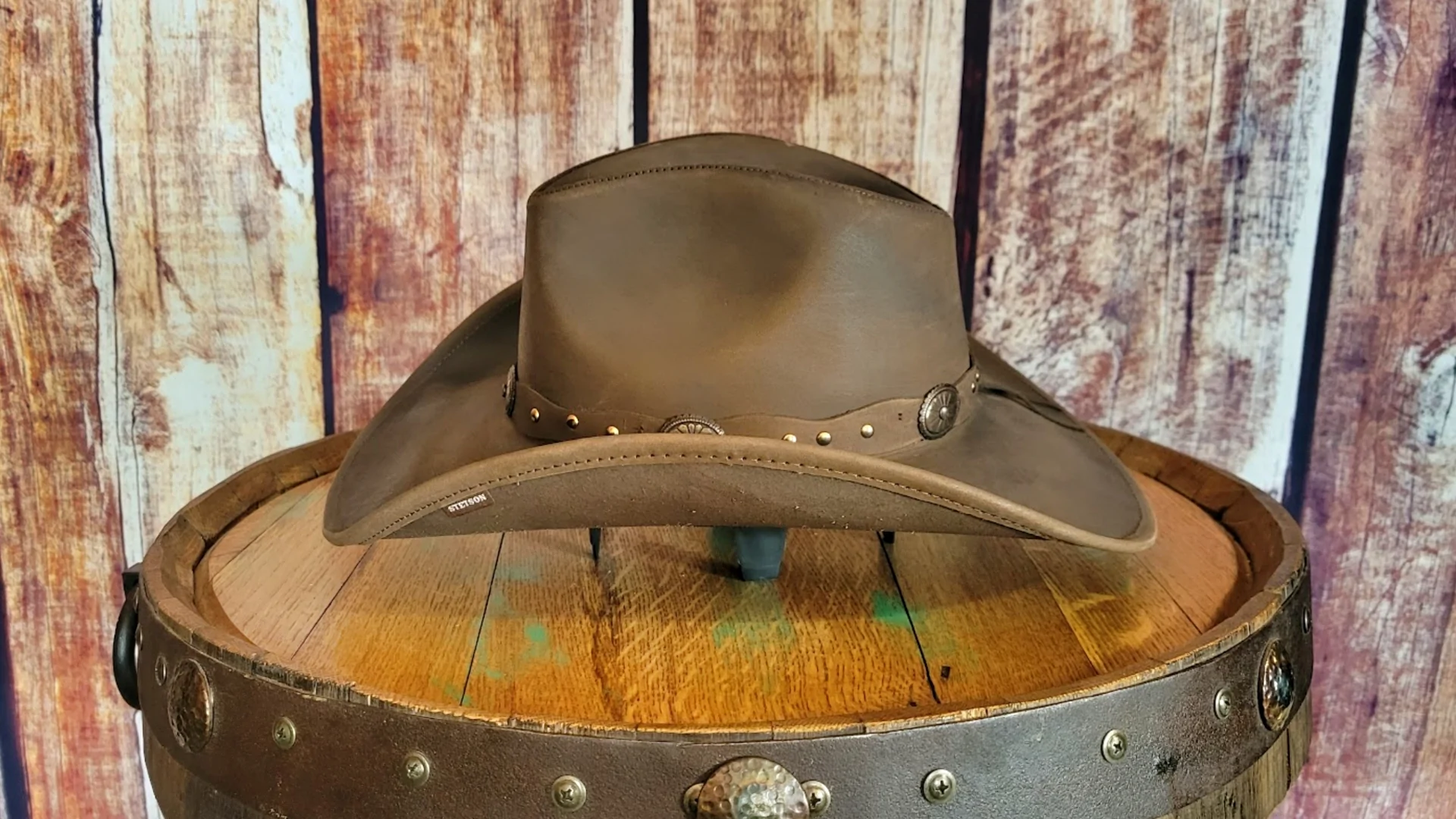 Enjoy a boot stomping good time while wearing the Roxbury. This shape-able leather hat from the Rodeo Drive Collection by Stetson is sure to be an instant party starter. Also a favorite for avid outdoors men, this hat has a 3 1/2″ brim and leather hat band with decorative conchos. One of the Most Amazing Entries into the Leather hat Family. Stetson has Out Done themselves with this Soft and Supple Shapeable Western Leather Hat.