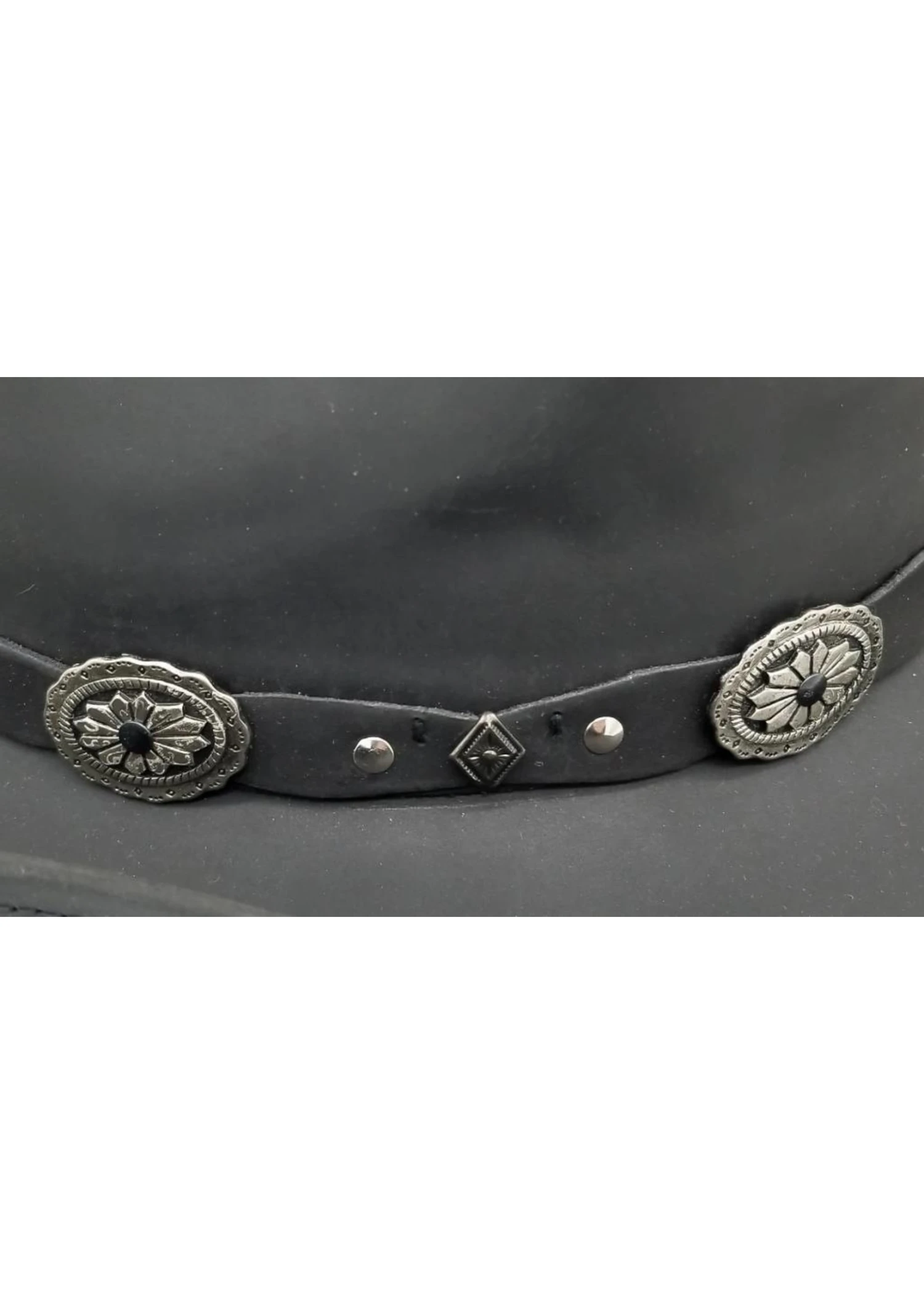 - Leather Band with Conchos may vary