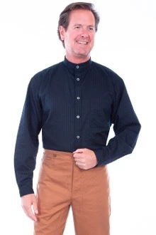 This stylish stripe shirt is perfect for work or play. It features a full button front, band collar and left chest pocket. For authentic western wear, travel back in time with Scully Range Wear, designed with classic western detailing. This old-timey item is made of 100% cotton material and features full button front and a left chest pocket. The Scully Range Wear collection is true classic western wear at its best!