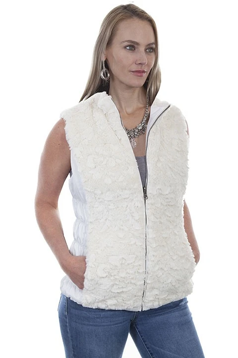 Stylish reversible fur vest. This fashion forward vest features faux fur down the front and back. It has quilted polyester side panels. It features a front zip closure and two lower hidden side entry pockets.For the best leather accessories, leather goods, and fine western clothing, look no further than Scully Leather. These high quality goods are crafted from the finest materials available. Enjoy Scully western style in this great vest.