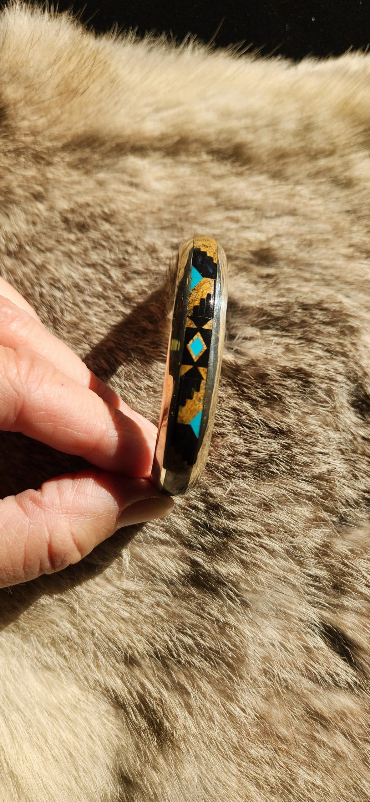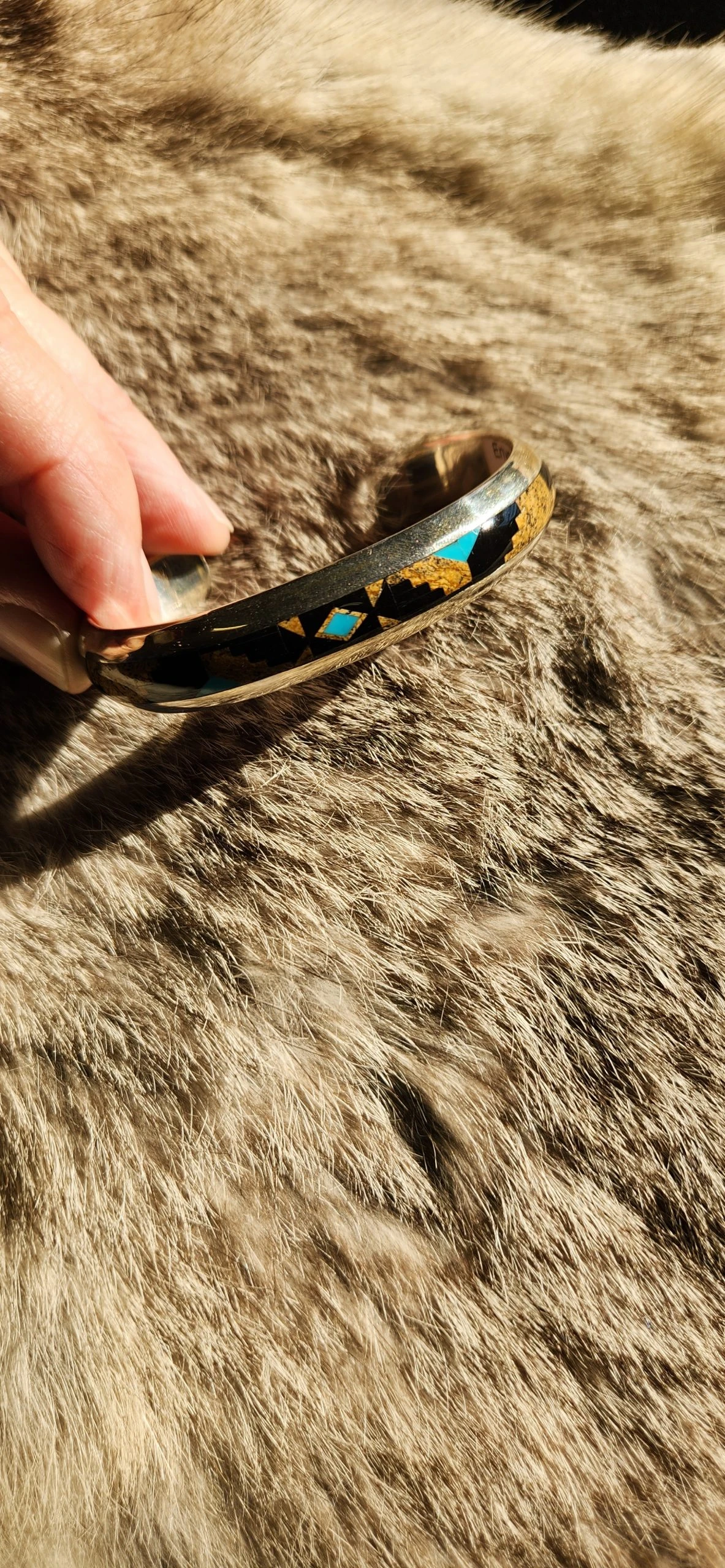 This beautiful cuff bracelet was designed by nationally renowned Designer David Rosales who is one of the finest contemporary Southwest Designers in the world today and is the founder and co-owner of Supersmiths, Inc. Hailing from Gallup, NM.