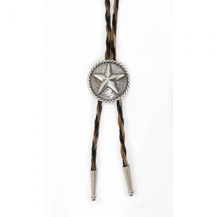 This Bolt 3 Bolo Tie is made from genuine two-tone horsehair with a Star clasp.