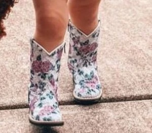 The Floral Cowboy Boots from Old West are perfect for your princess. This toddler boot showcases colorful floral lace and glittery inlay. With a non-slip outsole, the girl’s western boot is ready to dance the night away. The kid’s boot also has the added comfort in a cushioned insole and a zip-up side.