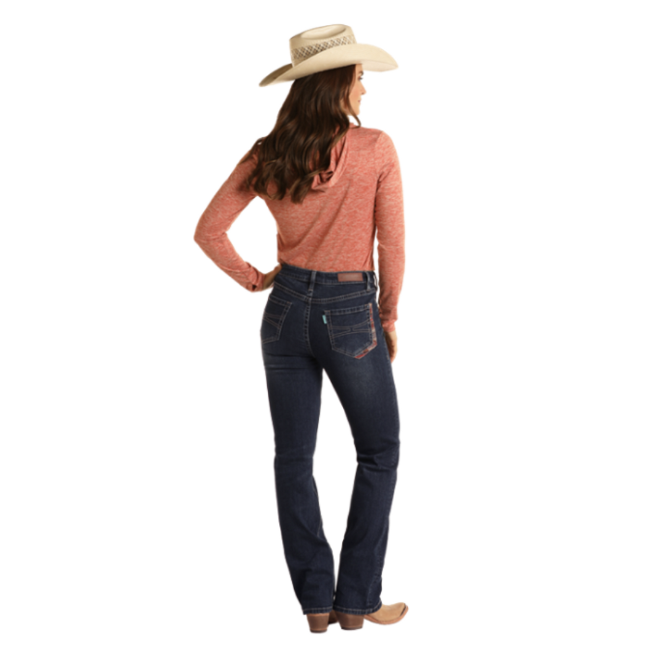 These Rock & Roll Denim Ladies Lakota Printed High Rise Bootcut Jean epitomize timeless style and modern sophistication. Meticulously crafted for a comfortable, flattering fit, their dark wash denim features a fashionable Lakota print around the pockets, adding a unique edge. Perfect for any occasion, these jeans will add an air of chic elegance to any wardrobe.